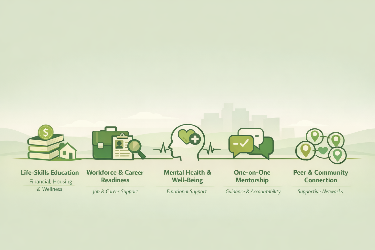 Life-Skills Education: Financial literacy, housing navigation, health and wellness education, and daily living skills to support independent adulthood.